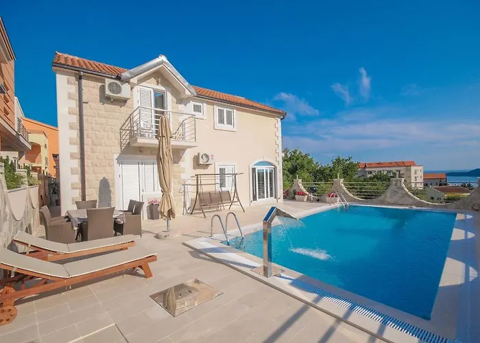 Situated approximately 25 minutes' walk from the Petrovac City Beach, the 3-bedroom Villa Portico Budva features a terrace with views of the sea. Offering a swimming pool, the accommodation invites guests to visit the Buljarice, located 4.3 km away.
